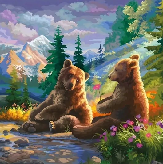 Алмазна Мозаїка “Ведмеді” на підрамнику Серія: Тварини Арт. UP213 Розмір: 25х25см Круглі акрілові стрази Викладка: повна В наявності